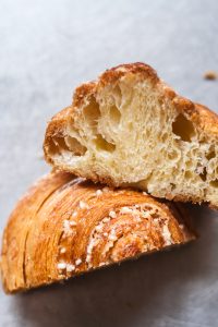 Lightly flour your work surface and roll the dough into a 20x60cm rectangle. Place butter on lower half, then give the dough three tours simples, with at least 30 minutes of rest in between each.